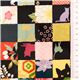 Tissu japonais laminé au motif traditionnel, chats, damiers orange noirs dorés Tissu