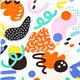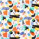 Tissu en coton blanc motif moderne pois gribouillis orange rose bleu Tissu