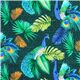 par Stof France Tissu Stof France avec des feuilles de palmiers et des paons. motifs bleus et verts imprimés numériquement sur fond texturé médaillon, paons et tissu de feuillage tropical