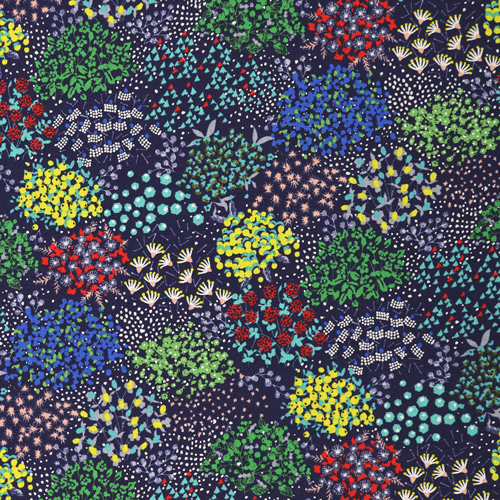 586,585,588 Croquis D'Impression De Jardin Fleuri Bleu Marine Fabric by Echino Fabrics - modeS4u