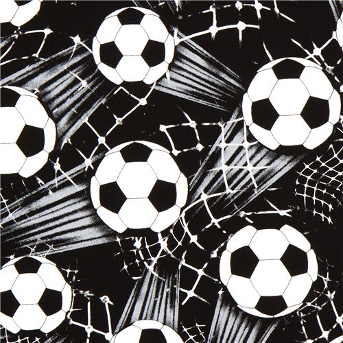 par Timeless TreasuresTissu avec des ballons de football tissu en coton noir avec des tas de ballons de football noir et blanc et des filets de but tissu de très grande qualité, excellente qualité typique des tissus Timeless Treasures