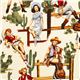 Tessuto Ragazze Pin-up Made in Japan tessuto di cotone con ragazze Pin up Cowboy con pistole, chitarre, cactus e cavalli tessuto di altissima qualità, tipica dei prodotti Alexander Henry