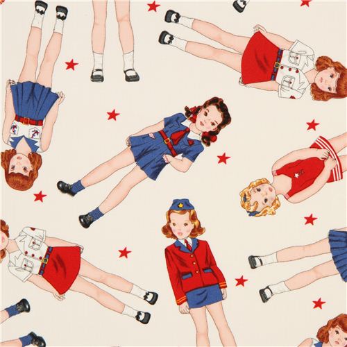 tessuto color panna di cotone con molte ragazze in uniforme e stelle