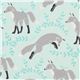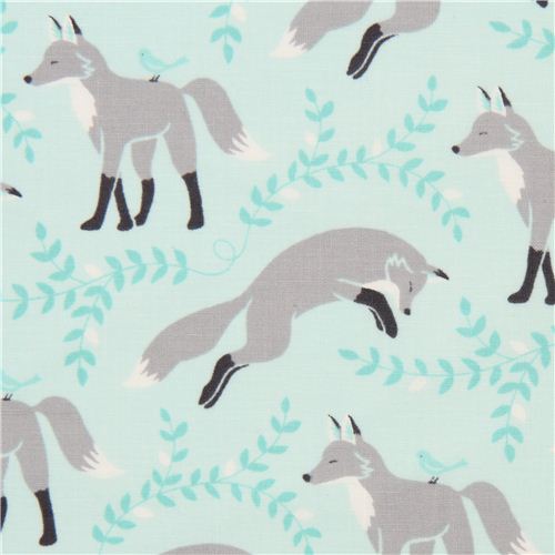 Tessuto di Michael Miller "Socks the Fox". tessuto celeste con divertenti volpi grigie tessuto di altissima qualità, tipica dei prodotti di Michael Miller
