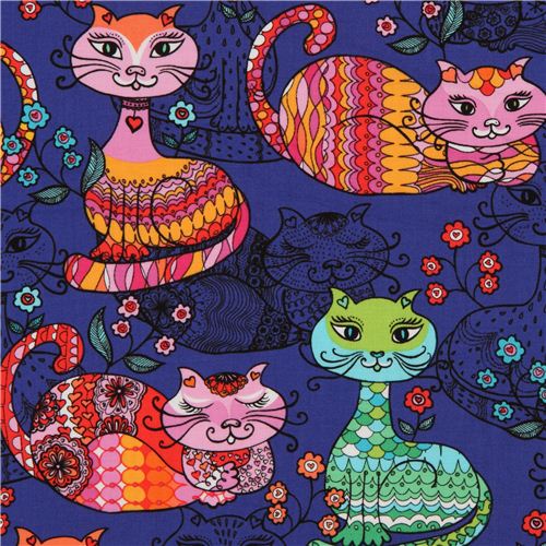 Tessuto viola con gatti decorati di Timeless Treasures Tessuto