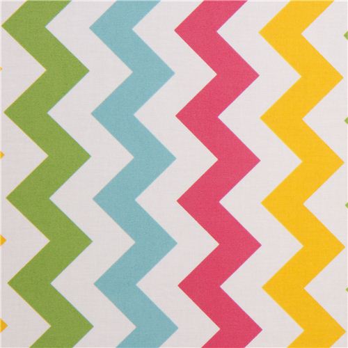 tessuto bianco in cotone laminato con motivo a zig zag giallo-rosa-blu-verde
