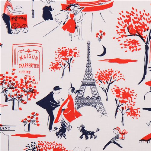 Eiffel Tower Paris retro fabric red Michael Miller Gay Paree 1
