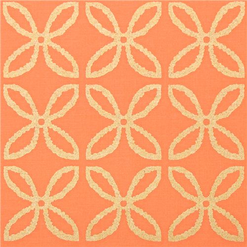 tessuto color pesca di cotone con motivo a fiorellini dorati