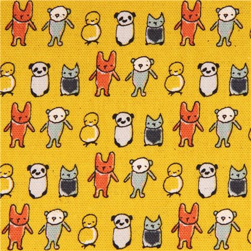 tessuto giallo animali dal Giappone con panda, pulcini, gatti, ecc., 'Creative Thursday - Marisa'