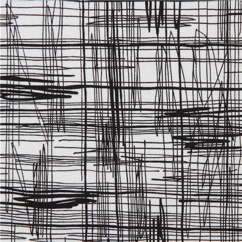 tessuto bianco Alexander Henry linee scarabocchi neri Concentric Tessuto