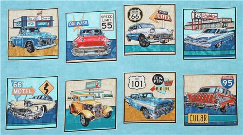 7 tessuto blu-turchese automobili veicoli Quilting Treasures Fabric by Japanese Indie - modeS4u