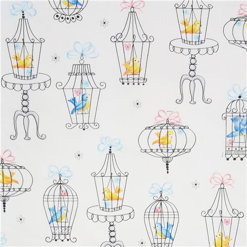 22 tessuto bianco animali gabbie uccelli Fabric by Michael Miller - modeS4u