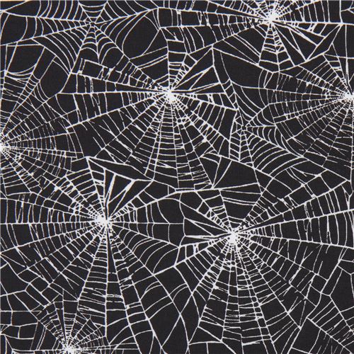 23 Rimanenza di (39 x 24 cm) - tessuto nero ragnatele Halloween Robert Kaufman - modeS4u