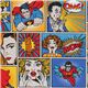 Tessuto colorato supereroi vintage a coste tessuto blu, arancione, rosso, ecc. di cotone a coste a pannelli con fumetti con supereroi, cittadini, scritte, ecc.