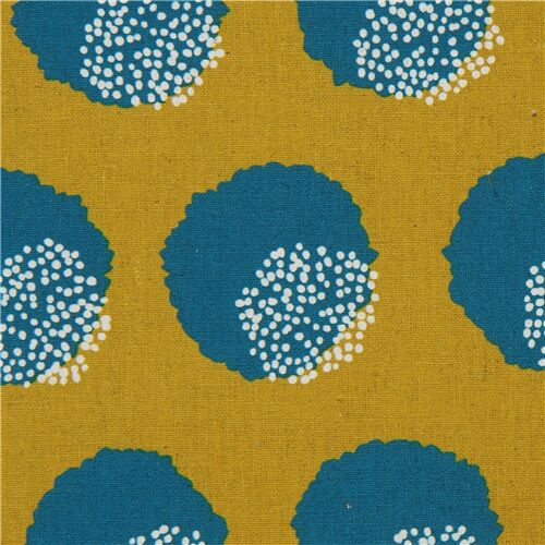 8 tessuto giallo senape macchie verdeazzurre echino in tela laminato Fabric by Echino Fabrics - modeS4u
