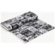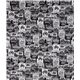 tessuto nero, bianco e grigio di cotone con motociclette e scritte come "prince of speed", "life is a journey" ecc.