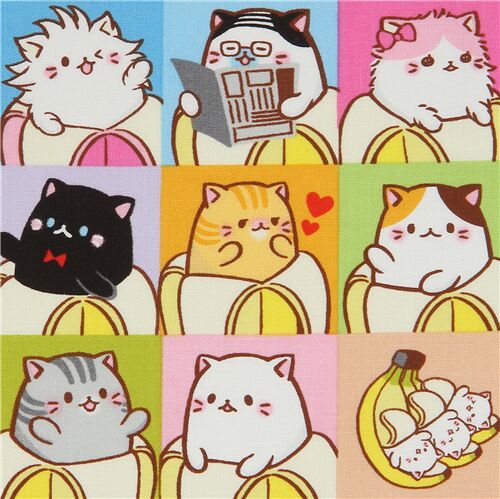 33 tessuto colorato Bananya a blocchi gatti banane Fabric by Japanese Indie - modeS4u