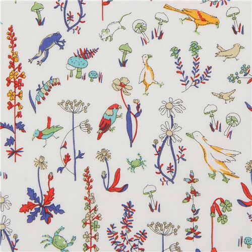 tessuto bianco animali giardino Liberty Fabrics Tana Lawn Tessuto
