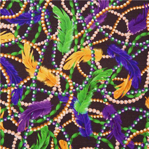 23 tessuto nero mardi gras piume perline Fabric by Quilting Treasures - modeS4u