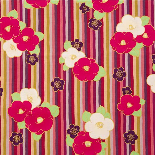 5,18,46 tessuto cotone dal Giappone strisce dorate colorate rosa fiori susino Fabric by Cosmo - modeS4u