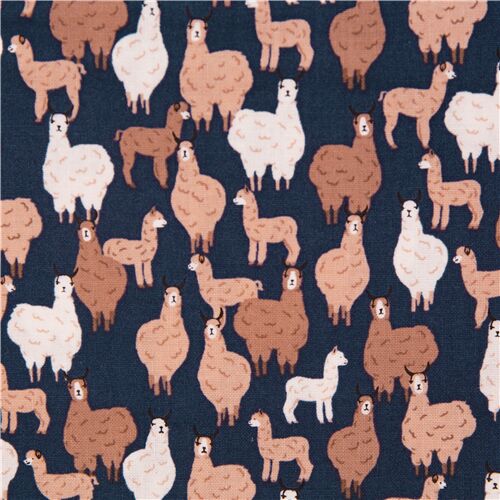 Tessuto blu Llamapalooza dagli USA tessuto blu grafite in cotone con lama beige, marroni e bianchi tessuto di altissima qualità, tipica dei prodotti Dear Stella 100% cotone USA
