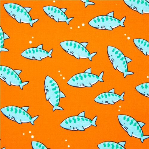 17 tessuto arancione cotone squali bianchi Fabric by Michael Miller - modeS4u