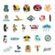adesivi con 50 diversi design con ukelele, alberi di cocco, onde, oceano
