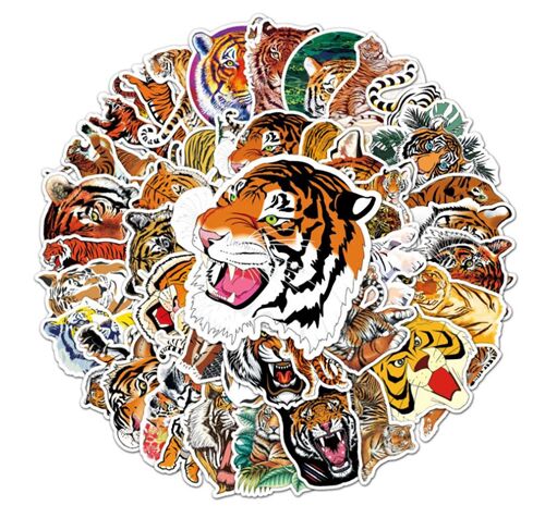 Pacchetto di adesivi fustellati con 50 disegni unici di tigri con personaggi di animali selvatici