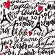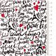 tessuto bianco di cotone con scritte e punti di riferimento di Parigi, ad es. Torre Eiffel con cuori rossi