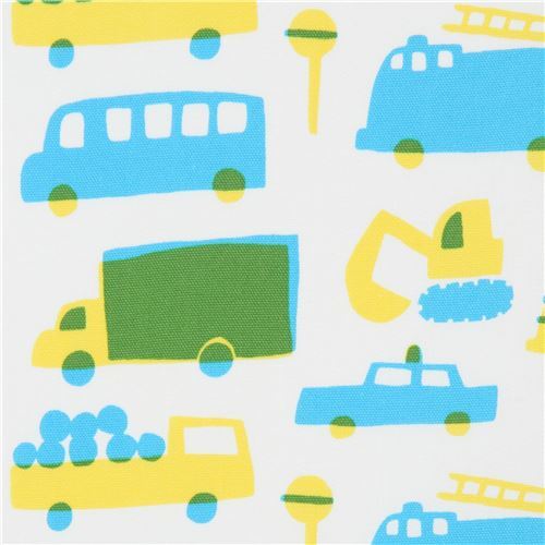 tessuto bianco autobus veicoli da costruzione oxford Kokka - Ritagli (110cm x 50cm)