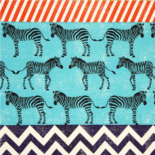Tessuto telato Echino turchese con zebre e strisce, Giappone Tessuto