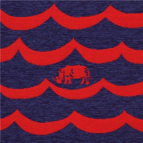 echino Jacquard Fabric. red and dark blue Jacquard fabric with waves, rhinos very high quality fabric, typical perfect Japanese quality