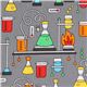 Science Fabric. grey cotton fabric with colorful beakers, test tubes etc. very high quality fabric, typical great Robert Kaufman quality